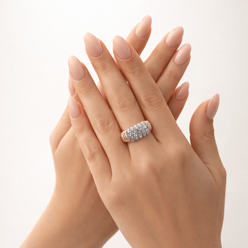Zarif tasarımlı çok taşlı altın kaplama yüzük modeli