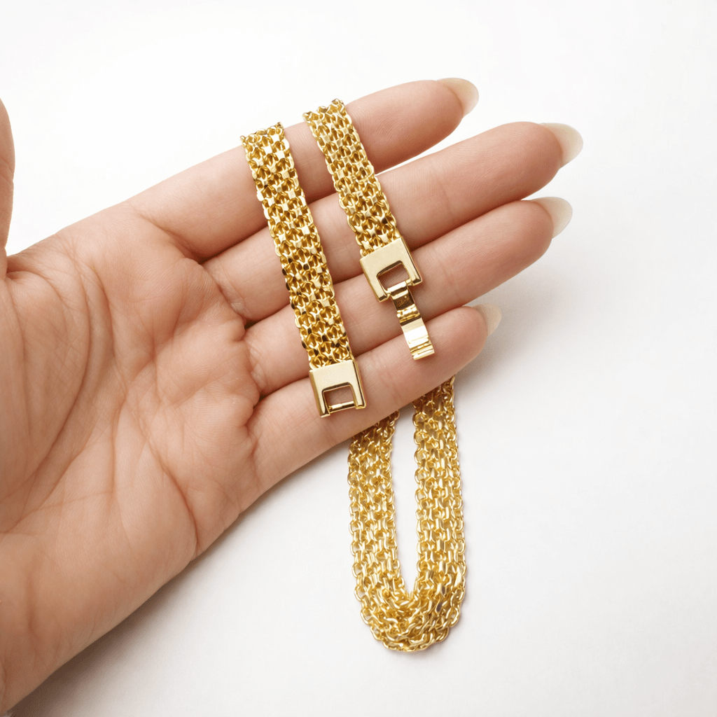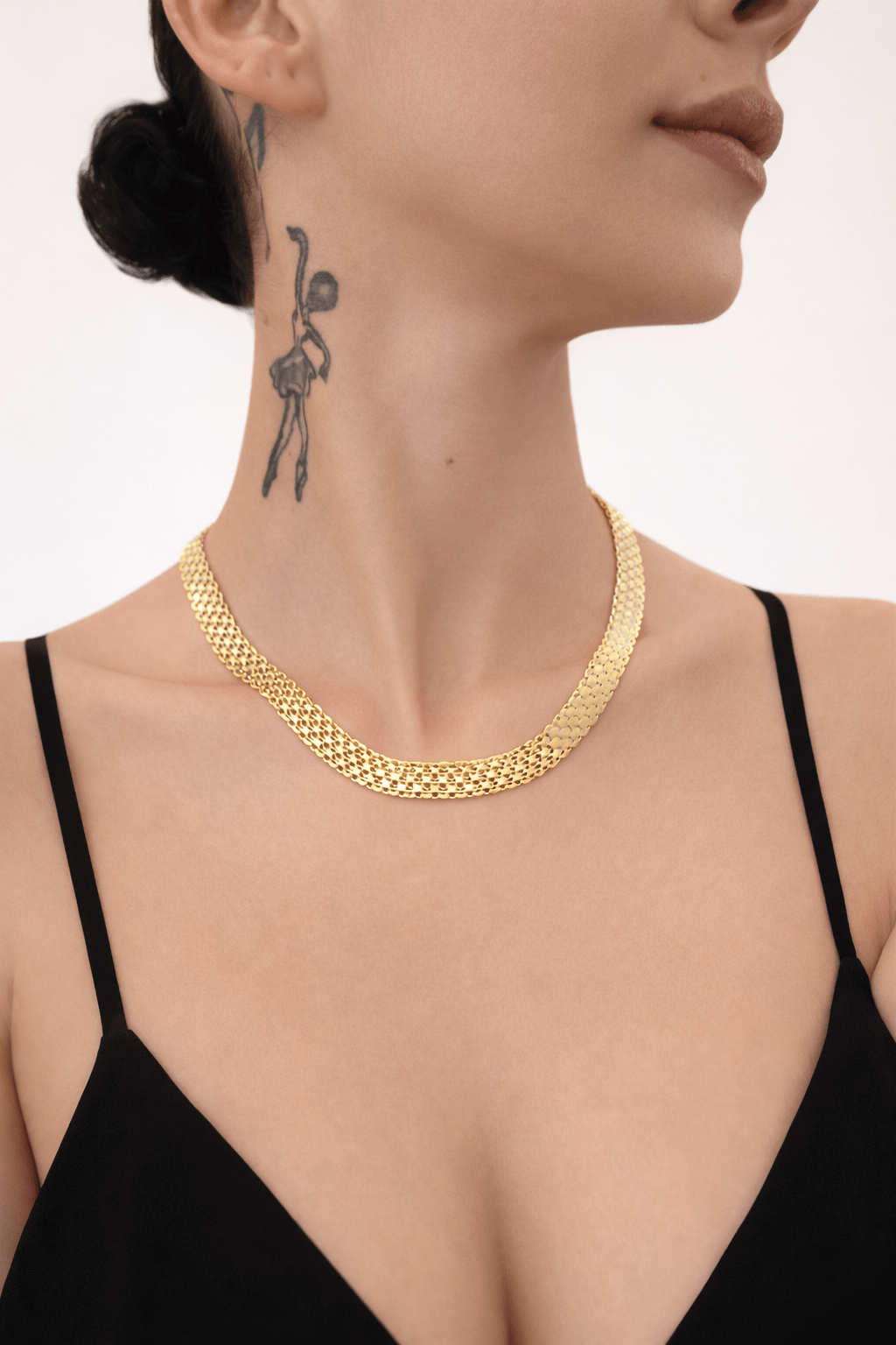 Altın Renk Çok Sıralı Geniş Zincir Kolye