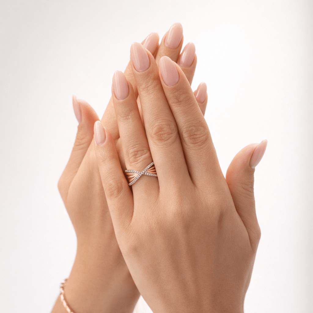 Modern ve zarif çapraz form zirkon taşlı yüzük modeli